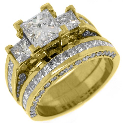 14k Yellow Gold 6 Carats Princess 3-Stone Diamond Engagement Ring Bridal Set